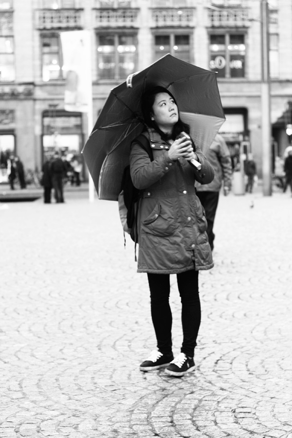 Streetmoments: Umbrella on Dam Square, Amsterdam