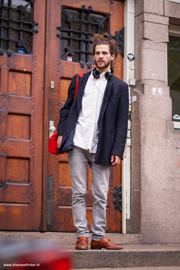 What I like in this look is the casual/ messy way of wearing these chic pieces of clothing. His beard and messy bun on top of his head really completes the whole look. A nice person with good style.