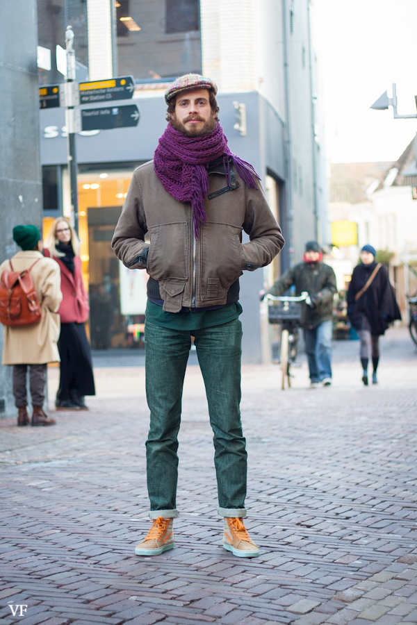 Such a great style. The use of colors, the rolled up legs, the hat and even his beard are perfect together. Really a nice and cooperative guy, who didn’t thought his look was that great. Modesty.