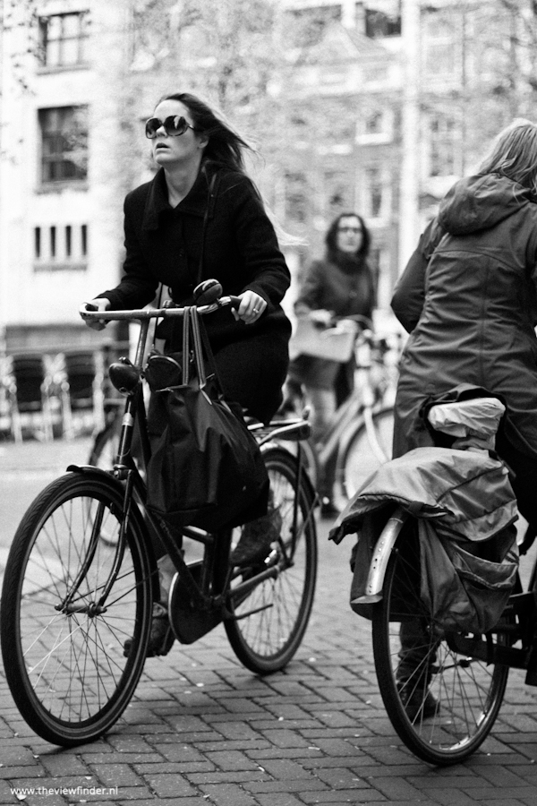 For me this is such a classic image of the bike-riders in Amsterdam ….always in a hurry, cycling through impossible crowded alleys and streets. This woman caught my eye because she was about to approach a crossway together with other bike-riders, while she was in a hurry obviously. After almost a collision she slightly irritated continued cycling.