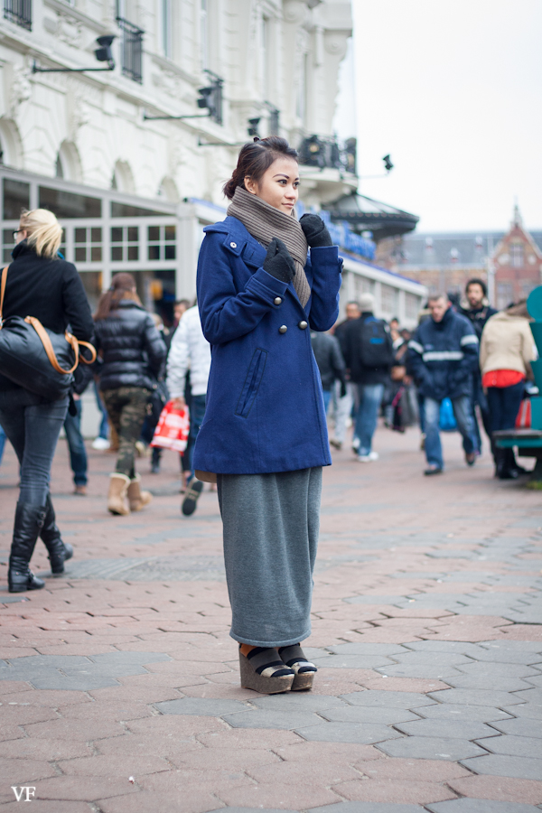 Great look. Even though there was a language barrier we did a good job. The skirt combined with those wedges and coat ..just great. I was kinda under pressure there, with her boyfriend standing besides me showing his evil look of death. What the heck, it was totally worth the effort.